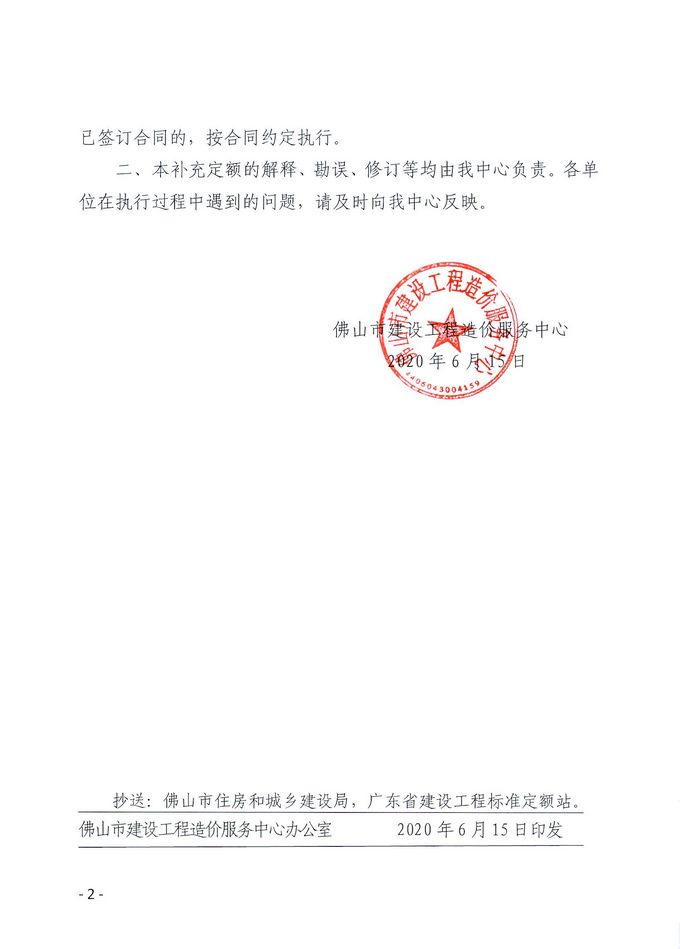 佛山市建設工程造價服務中心關于印發《佛山市建設工程補充綜合定額(2019)》的通知