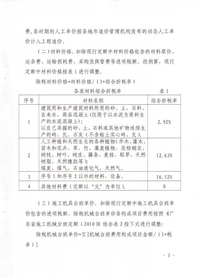 廣東省住房和城鄉建設廳關于營業稅改征增值稅后調整廣東省建設工程計價依據的通知