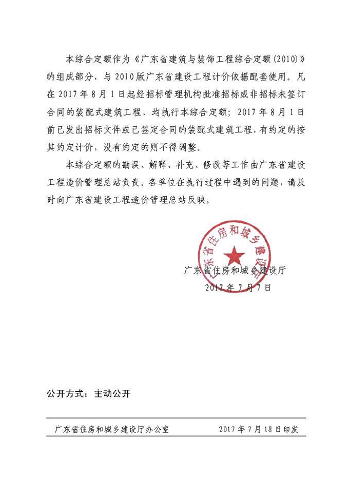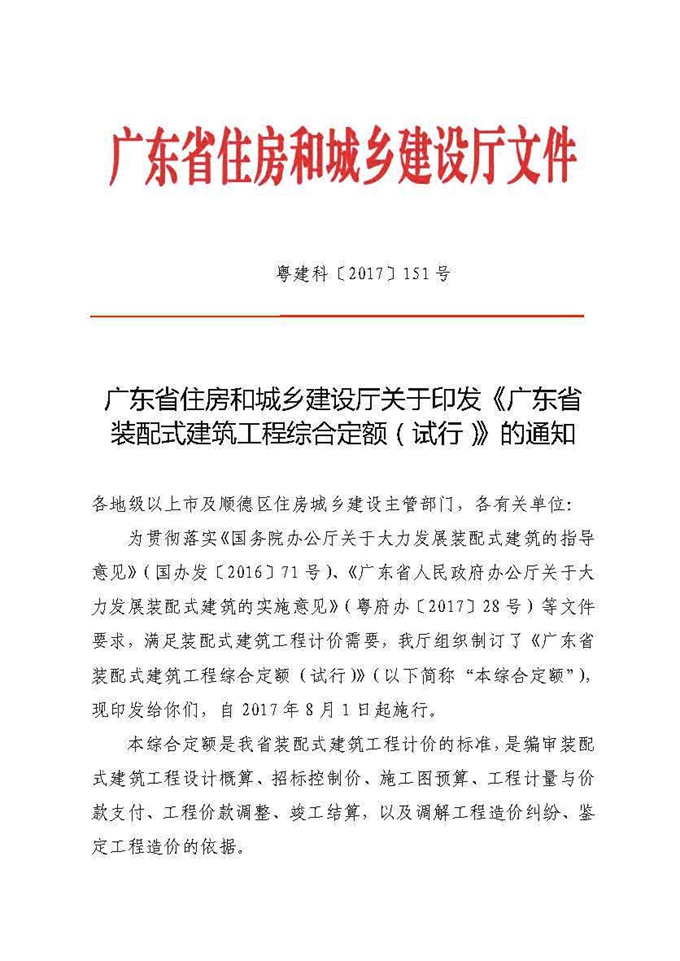 廣東省住房和城鄉(xiāng)建設(shè)廳關(guān)于印發(fā)《廣東省裝配式建筑工程綜合定額(試行)》的通知