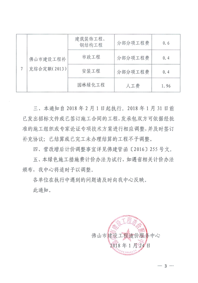 佛山市建設工程造價服務中心關于綠色施工措施費計價辦法的通知