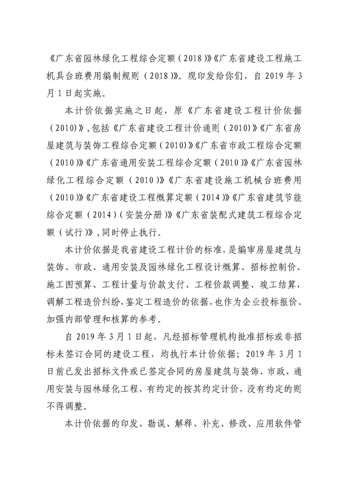 廣東省住房和城鄉建設廳關于印發《廣東省建設工程計價依據(2018)》的通知
