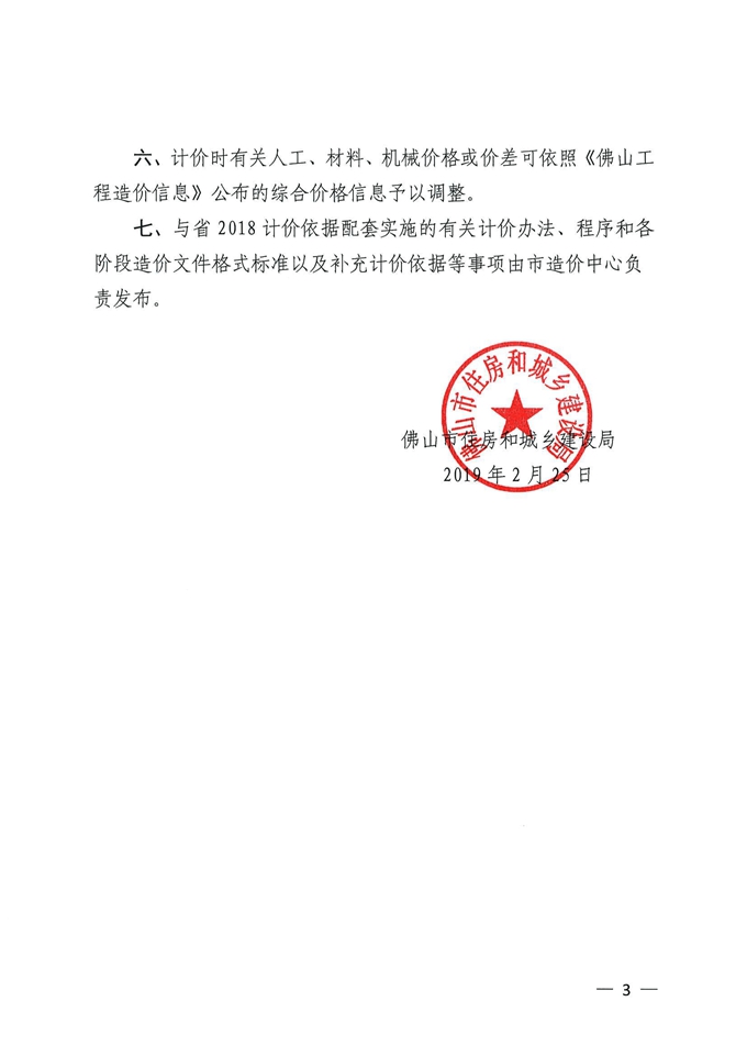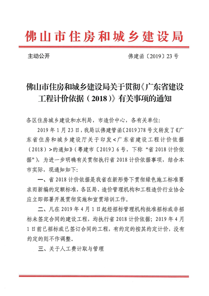佛山市住房和城鄉建設局關于貫徹《廣東省建設工程計價依據(2018)》有關事項的通知