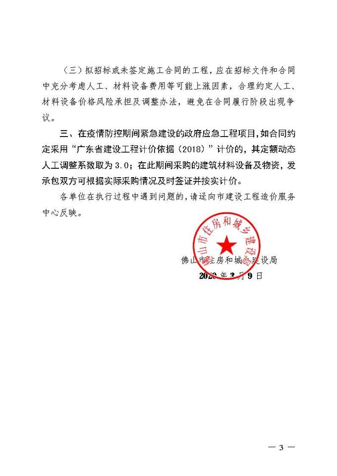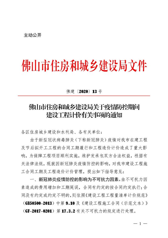 佛山市住房和城鄉(xiāng)建設(shè)局關(guān)于疫情防控期間建設(shè)工程計價有關(guān)事項的通知