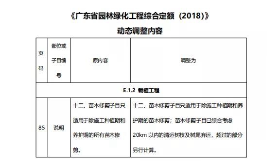 2:《廣東省園林綠化工程綜合定額(2018)》動態調整內容。