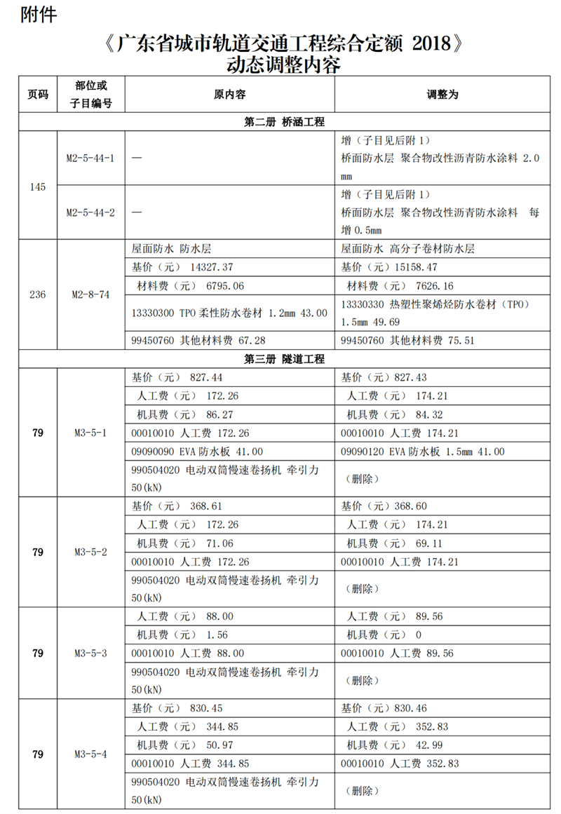 附件:《廣東省城市軌道交通工程綜合定額 2018》動態(tài)調(diào)整內(nèi)容