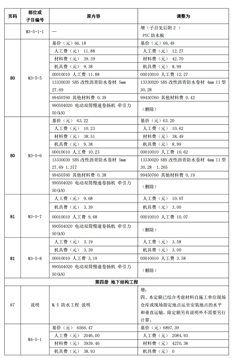 《建筑與市政工程防水通用規(guī)范》GB55030-2022(以下簡稱為“防水通用規(guī)范”)已頒布實(shí)施,根據(jù)新舊防水規(guī)范之間的差異,我站組織專家調(diào)整了《廣東省城市軌道交通工程綜合定額 2018》防水項(xiàng)目相關(guān)內(nèi)容,現(xiàn)印發(fā)你們。所調(diào)整內(nèi)容與我省現(xiàn)行工程計(jì)價(jià)依據(jù)配套使用,除合同另有約定外,已經(jīng)合同雙方確認(rèn)的工程造價(jià)成果文件不作調(diào)整。