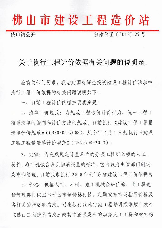 關(guān)于執(zhí)行工程計(jì)價(jià)依據(jù)有關(guān)問題的說(shuō)明函