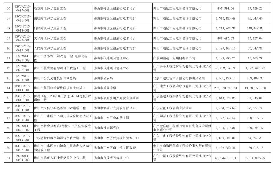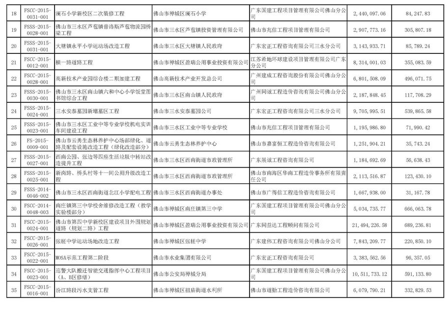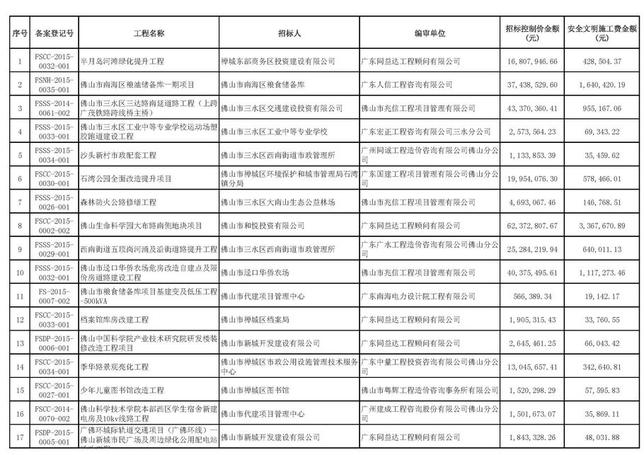 佛山市招標控制價備案情況表(2015-04-01至2015-06-30)