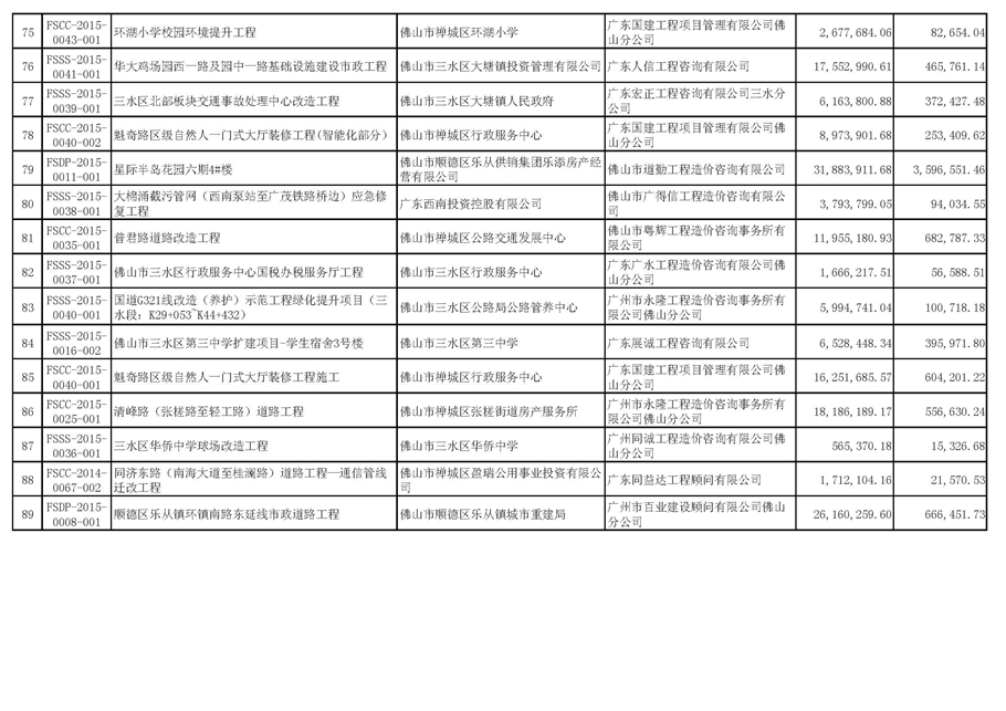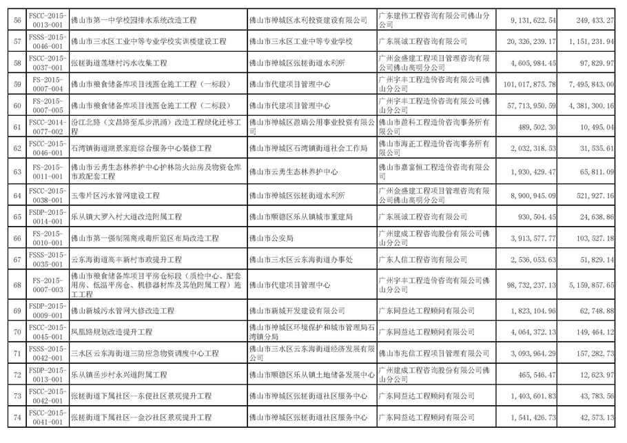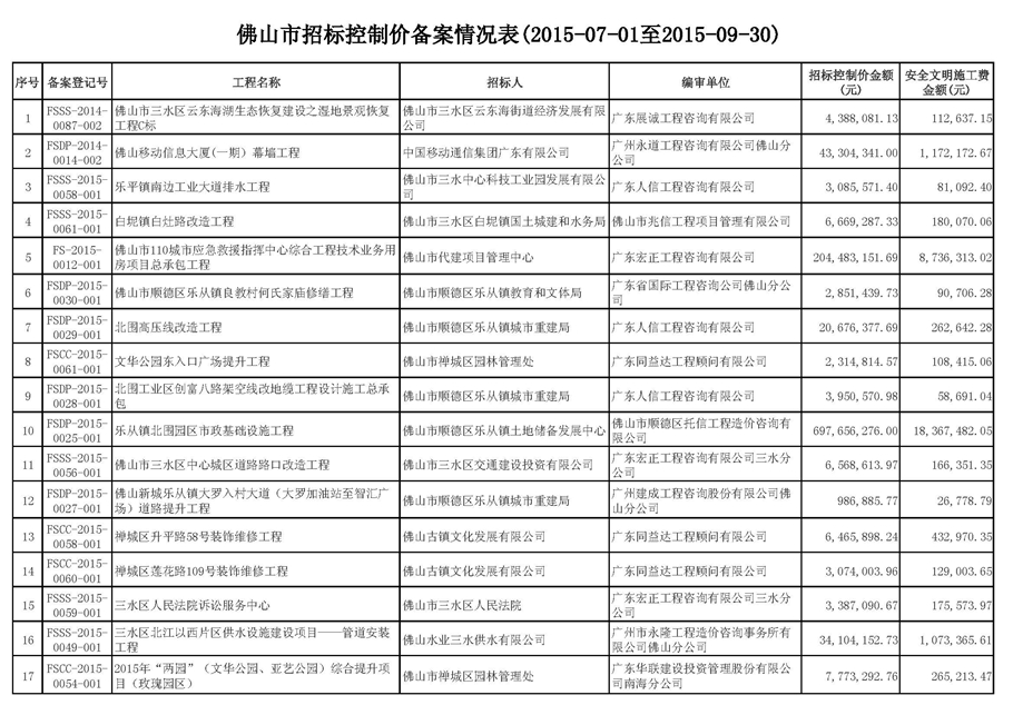 佛山市招標(biāo)控制價備案情況表(2015-07-01至2015-09-30)