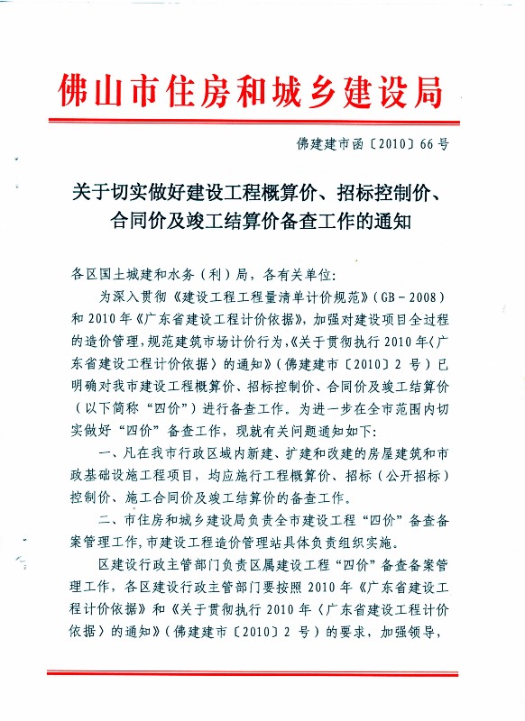 關于切實做好建設工程概算價、招標控制價、合同價及竣工結(jié)算價備查工作的通知