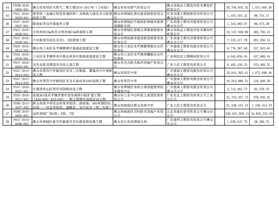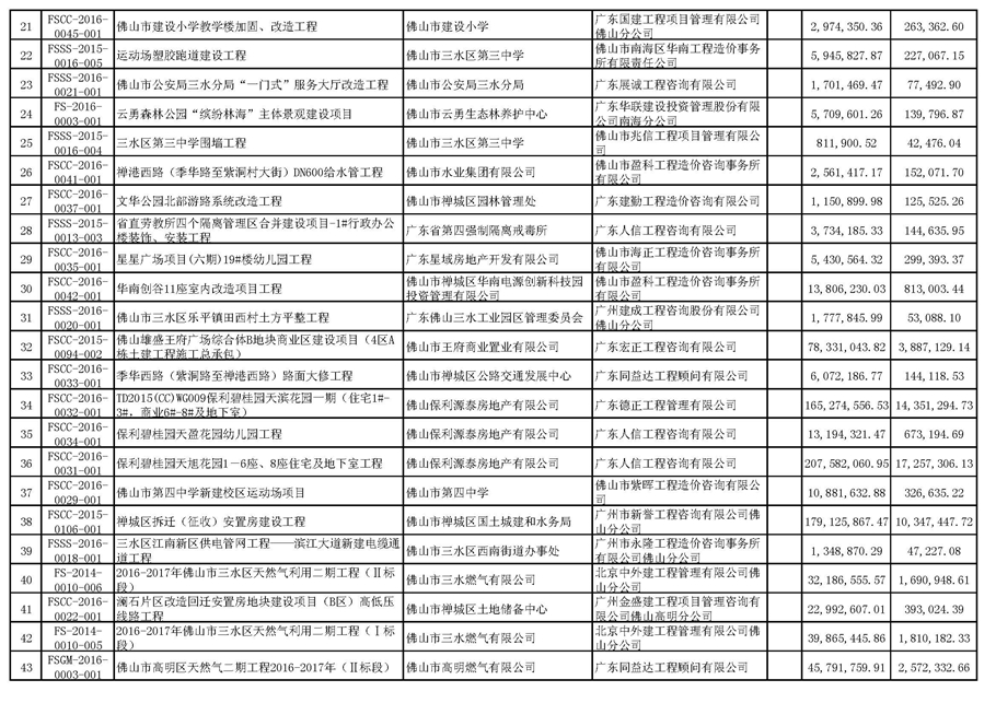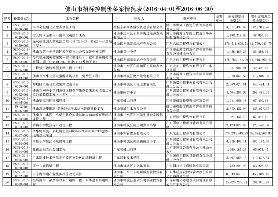 佛山市招標(biāo)控制價備案情況表(2016-04-01至2016-06-30)