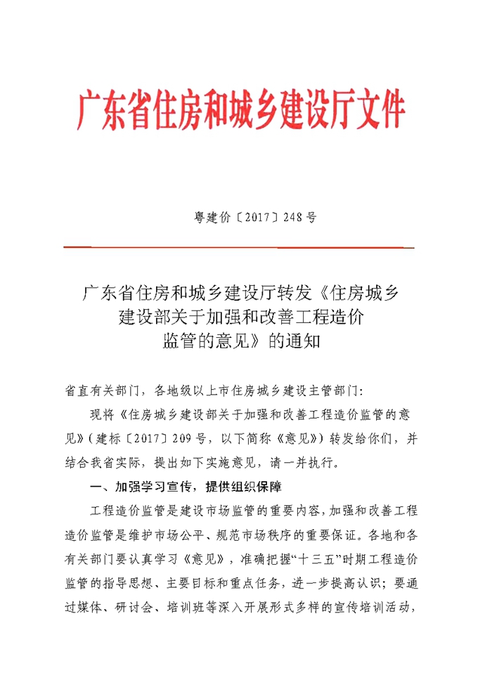 廣東省住房和城鄉(xiāng)建設(shè)廳轉(zhuǎn)發(fā)《住房城鄉(xiāng)建設(shè)部關(guān)于加強(qiáng)和改善工程造價(jià)監(jiān)管的意見》的通知