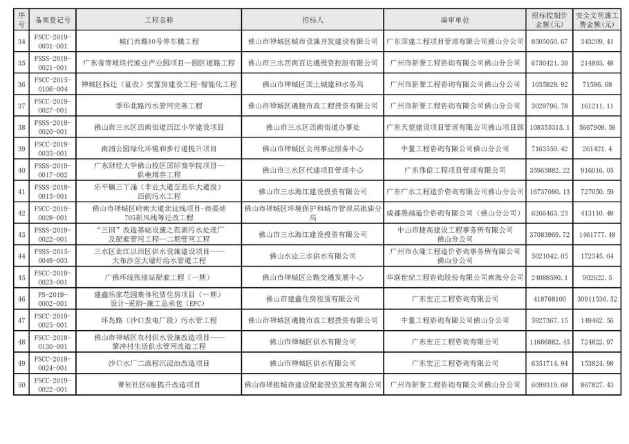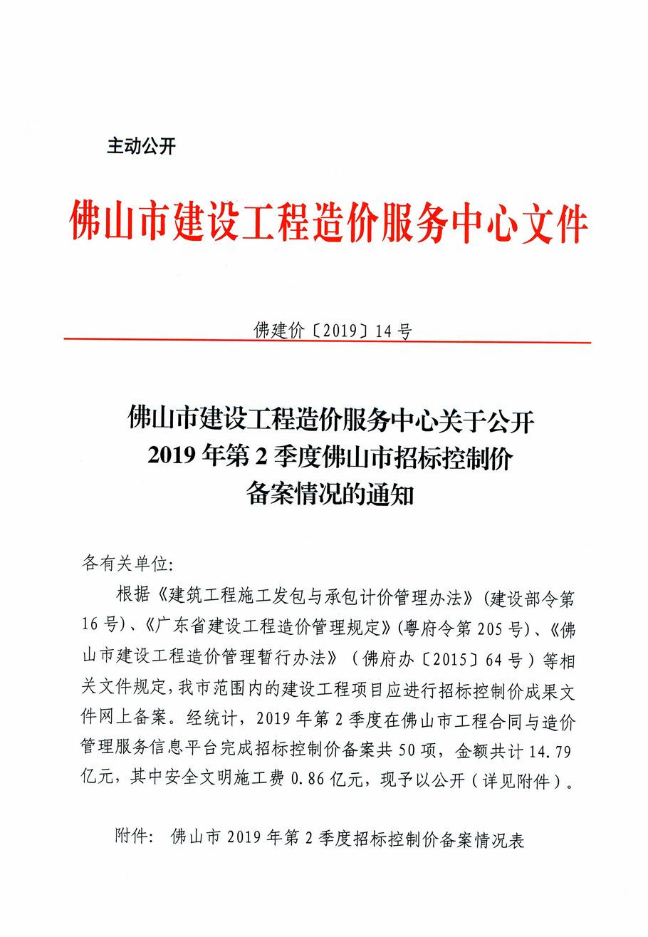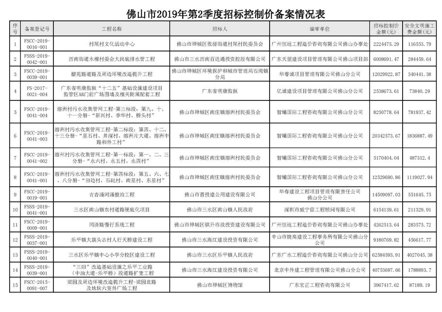 佛山市建設(shè)工程造價(jià)服務(wù)中心關(guān)于公開(kāi)2019年第2季度佛山市招標(biāo)控制價(jià)備案情況的通知