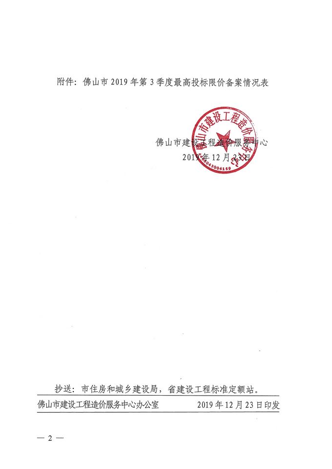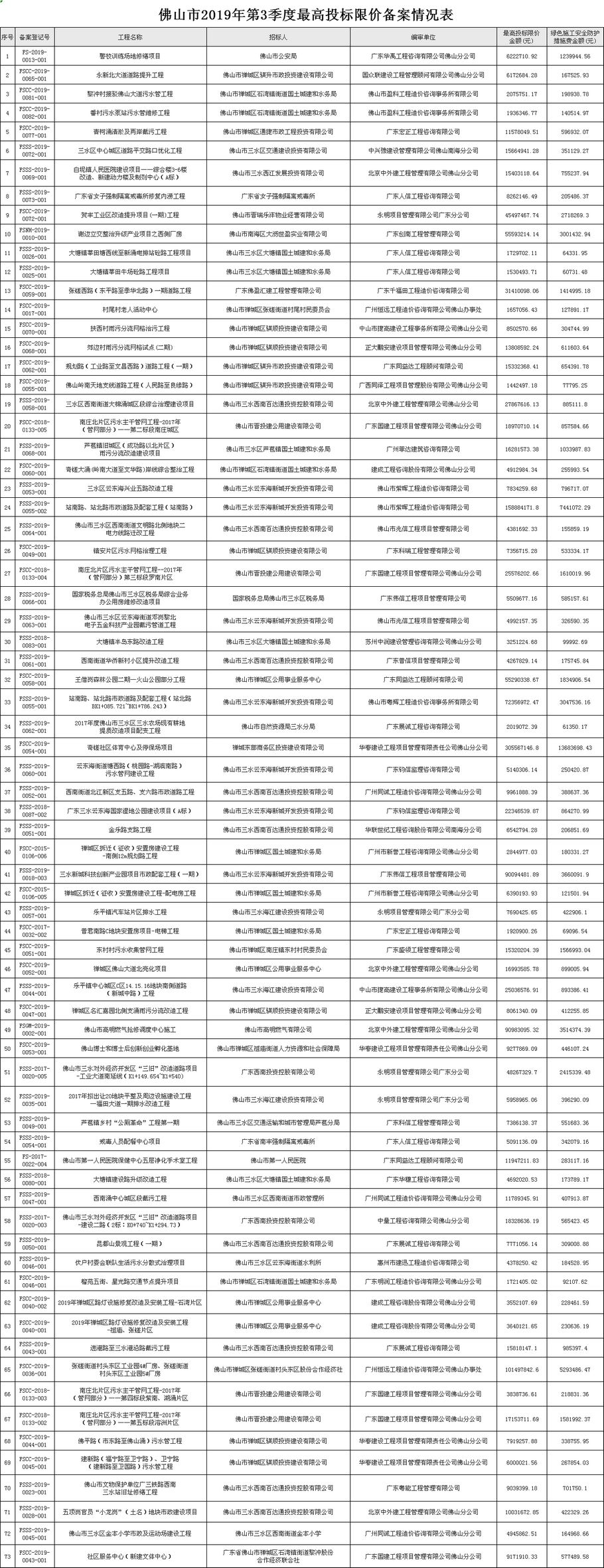 佛山市建設工程造價服務中心關于公開2019年第3季度佛山市招標控制價備案情況的通知