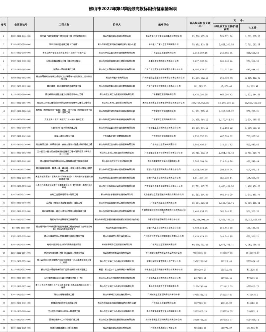 附件:佛山市2022年第4季度最高投標限價備案情況表