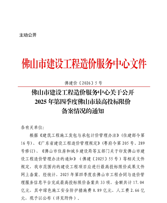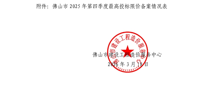 轉(zhuǎn)發(fā) | 佛山市建設(shè)工程造價(jià)服務(wù)中心關(guān)于公開(kāi)2025年第四季度佛山市最高投標(biāo)限價(jià)備案情況的通知