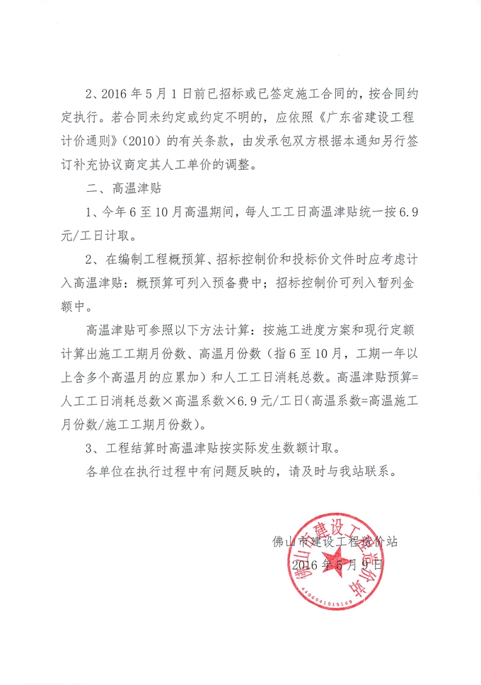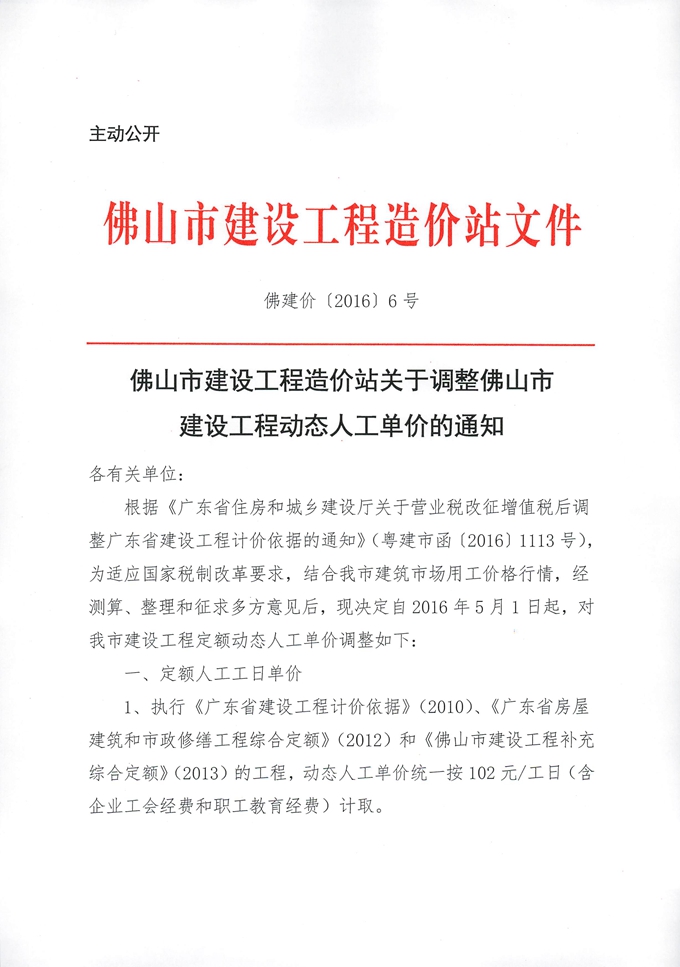 佛山市建設(shè)工程造價站關(guān)于調(diào)整佛山市建設(shè)工程動態(tài)人工單價的通知