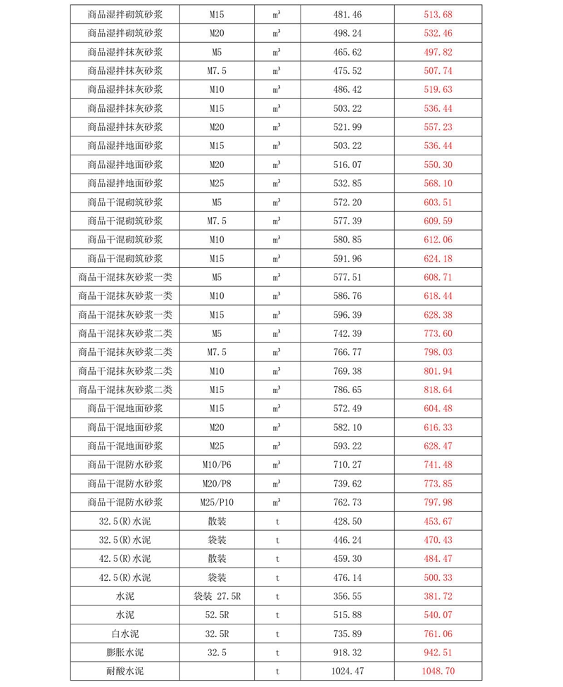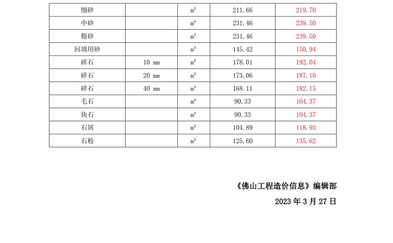 《佛山工程造價信息》2023年1月混凝土及其相關配料綜合價格勘誤表(材價網網站勘誤)