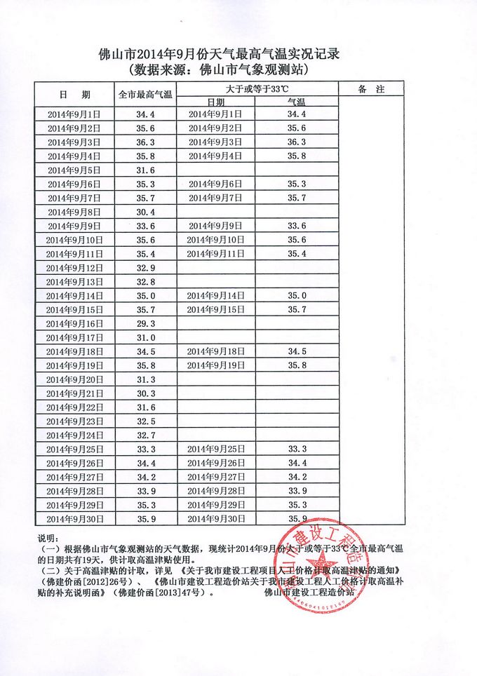 《關(guān)于我市建設(shè)工程項目人工價格計取高溫津貼的通知》(佛建價函[2012]26號)