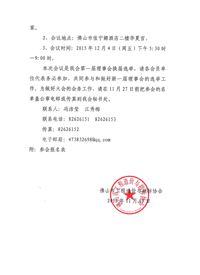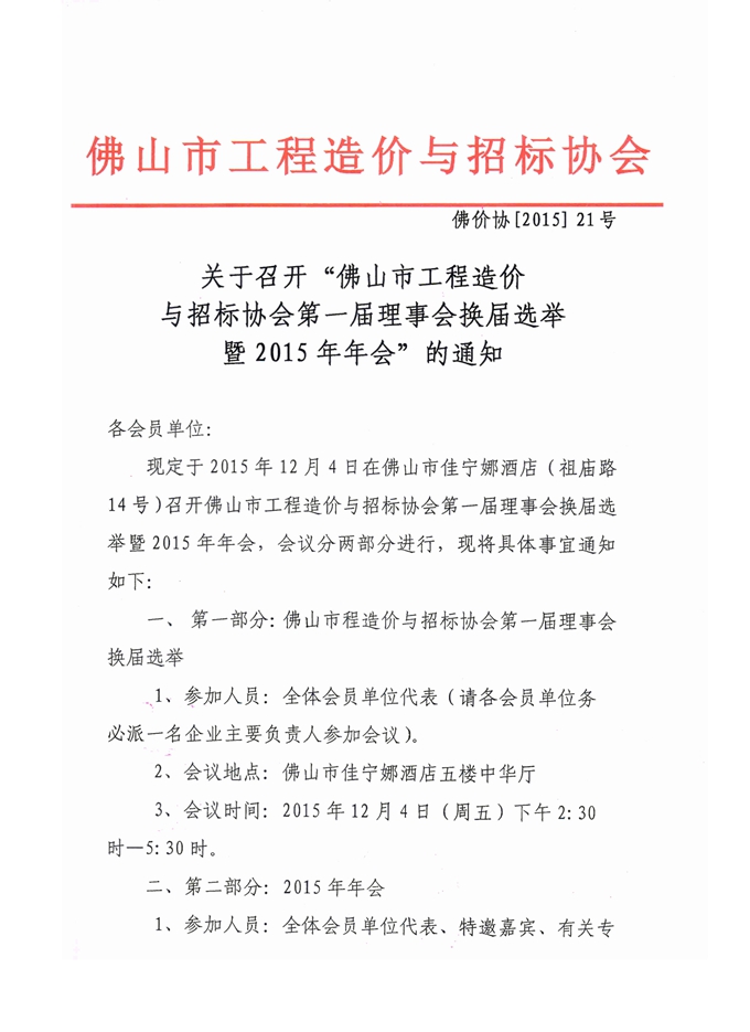關于召開“佛山市工程造價與招標協會第一屆理事會換屆選舉暨2015年年會”的通知