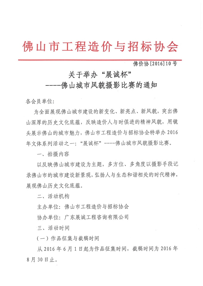 關(guān)于舉辦“展誠杯”佛山城市風(fēng)貌攝影比賽的通知