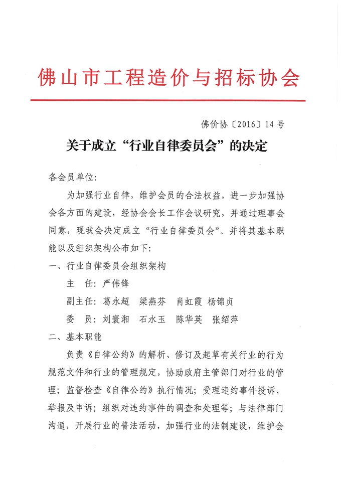 關(guān)于成立“行業(yè)自律委員會”的決定