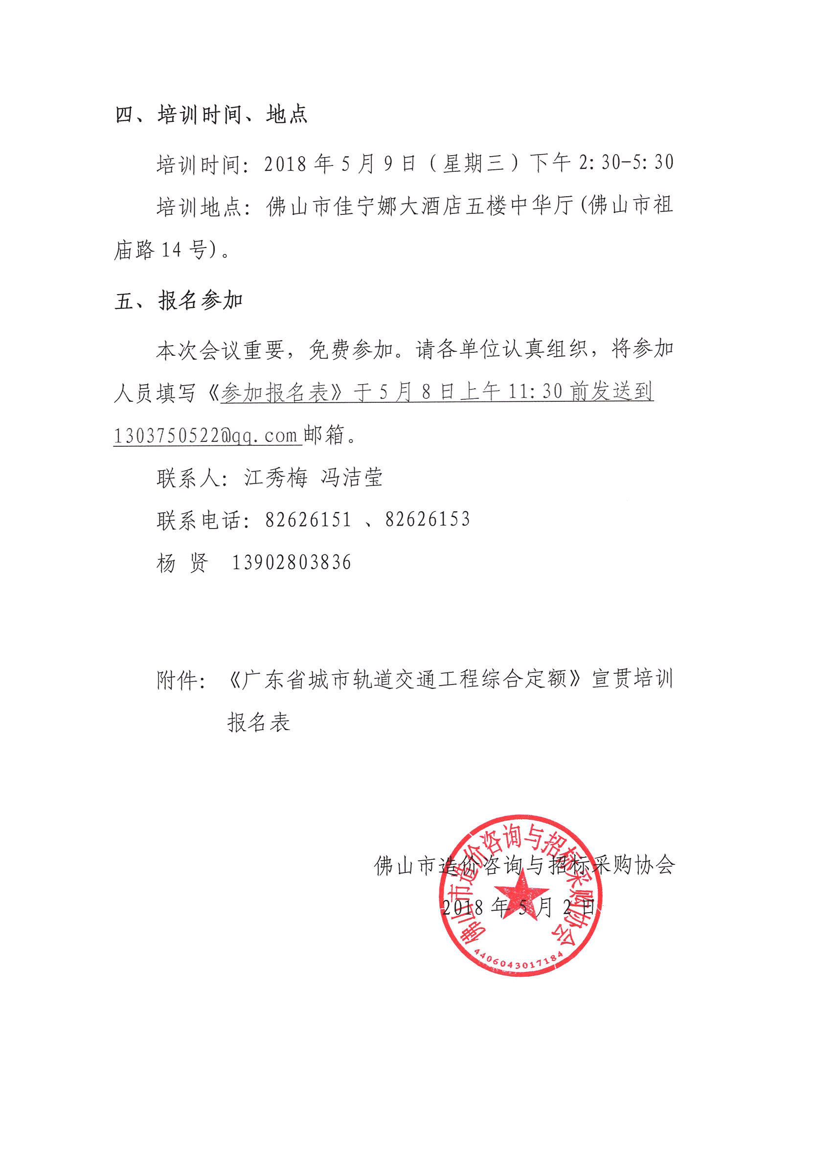 附件:《廣東省城市軌道交通工程綜合定額》宣貫培訓報名表