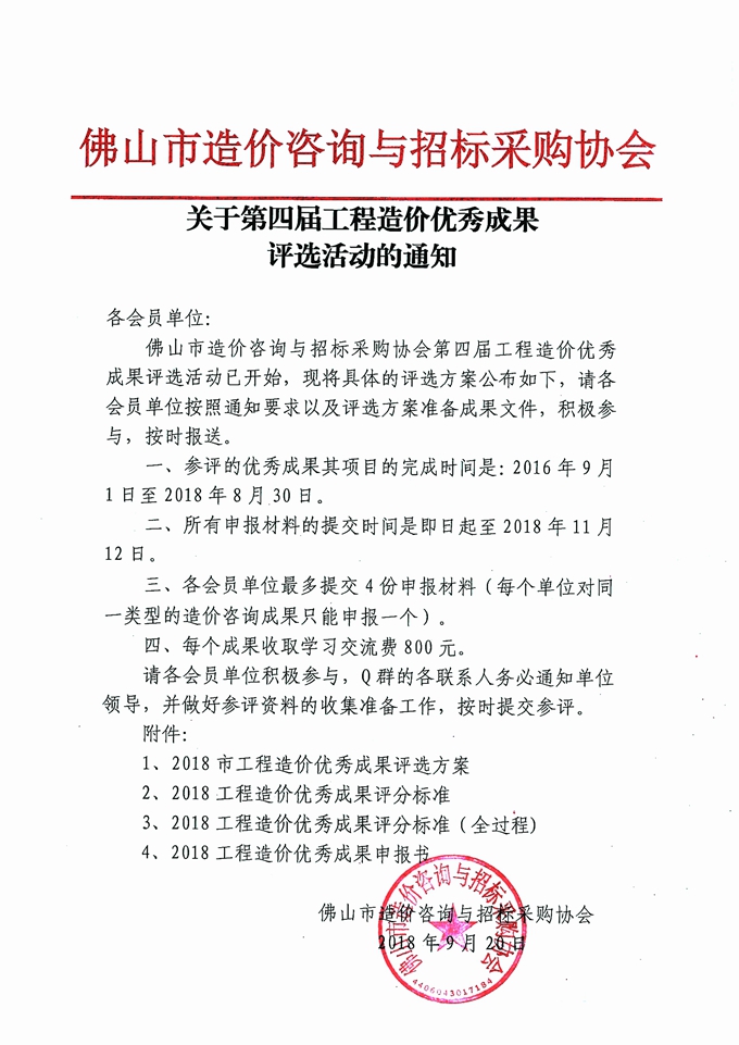 關于第四屆工程造價優(yōu)秀成果評選活動的通知