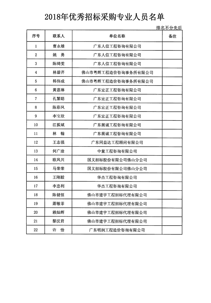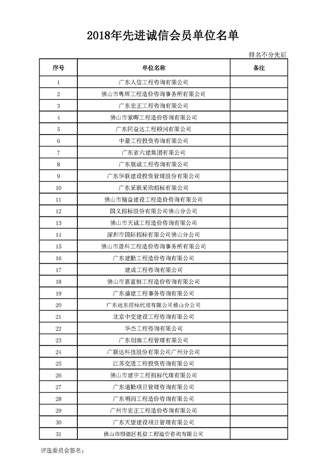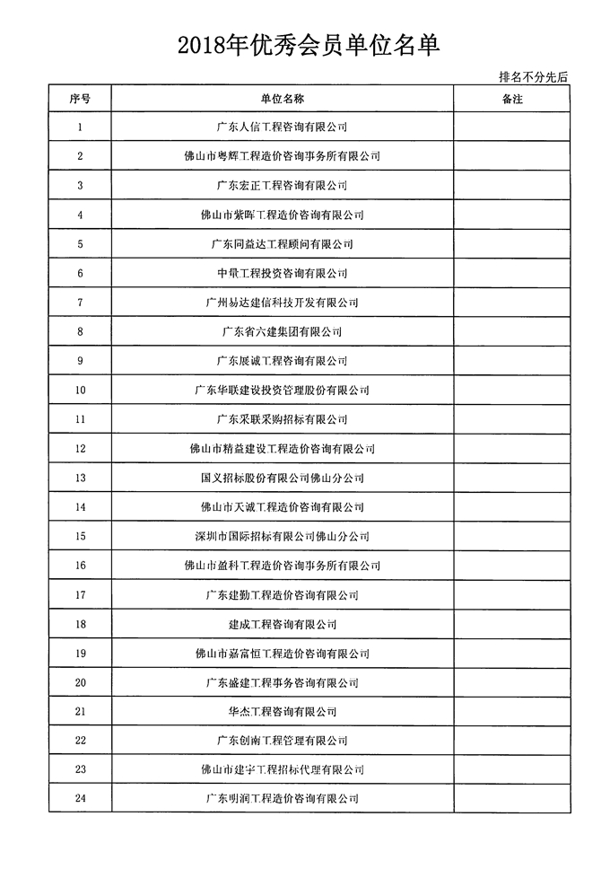 關于佛山市造價咨詢與招標采購協會2018年度優秀會員單位 先進誠信會員單位 優秀造價師 優秀招標采購專業人員評選結果的公示通知