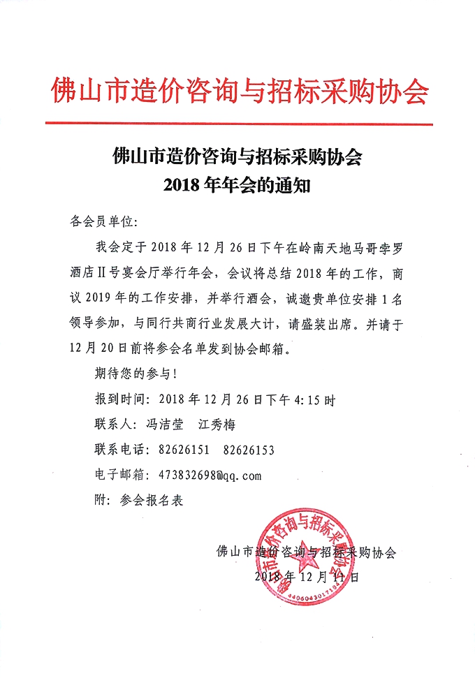 佛山市造價(jià)咨詢與招標(biāo)采購(gòu)協(xié)會(huì)2018年年會(huì)通知