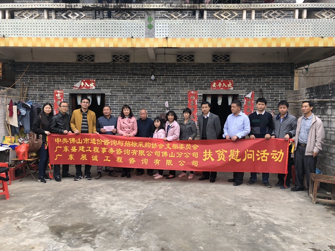 1月15日,我會(huì)黨支部和廣東展誠(chéng)工程咨詢(xún)公司、廣東盛建工程事務(wù)咨詢(xún)有限公司佛山分公司一行8人在高明區(qū)民政局程局長(zhǎng)親自帶領(lǐng)下,深入到高明區(qū)更合鎮(zhèn)白洞村給當(dāng)?shù)乩щy戶(hù)進(jìn)行扶貧慰問(wèn)。