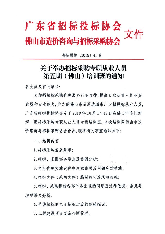 關于舉辦招標采購專職從業(yè)人員第五期(佛山)培訓班的通知