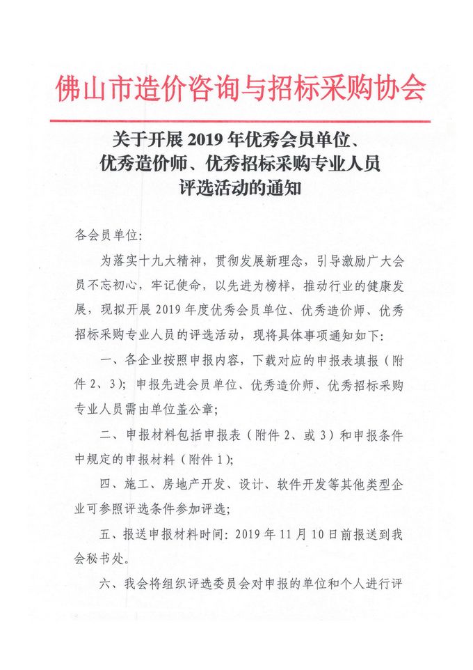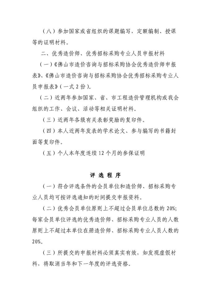 附件1、2019年佛山市造價咨詢與招標(biāo)采購協(xié)會優(yōu)秀會員單位 優(yōu)秀造價師 優(yōu)秀招標(biāo)采購專業(yè)人員評選條件