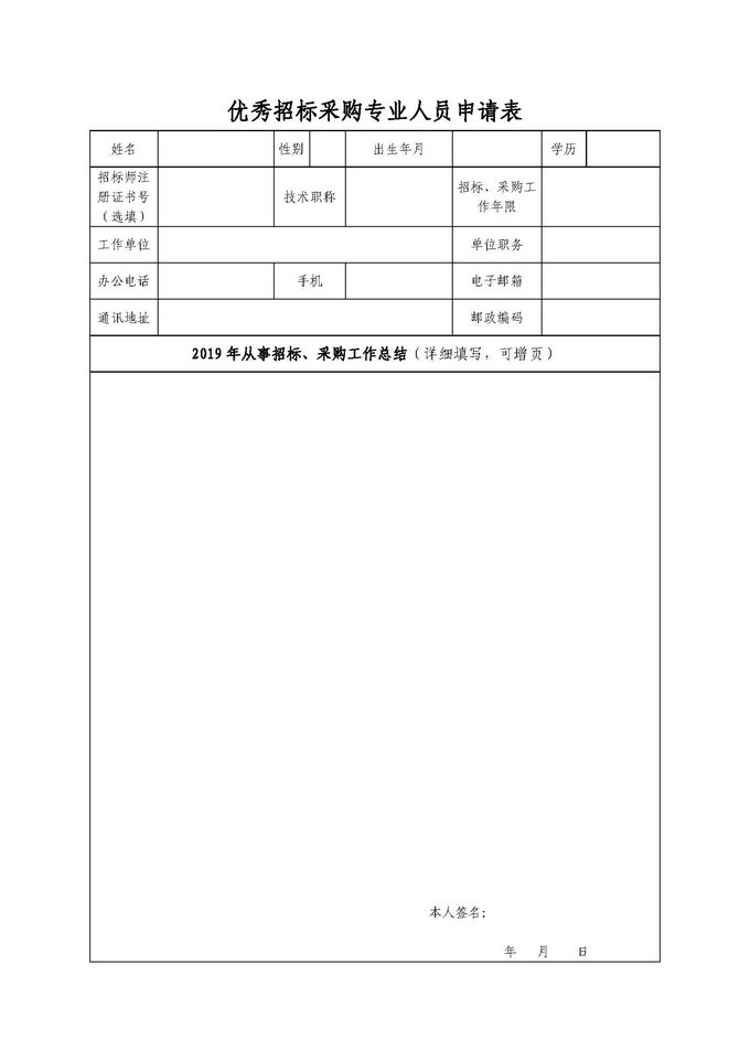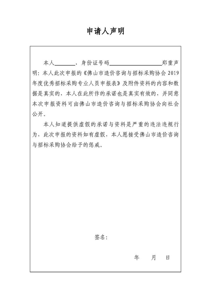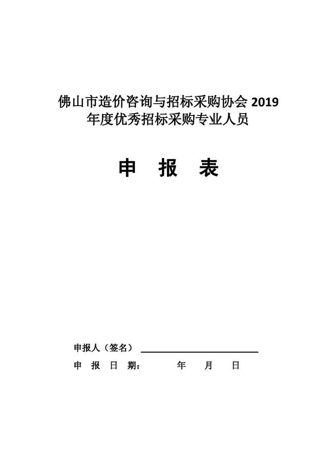 附件4、佛山市造價咨詢與招標(biāo)采購協(xié)會2019年度優(yōu)秀招標(biāo)采購專業(yè)人員申 報 表