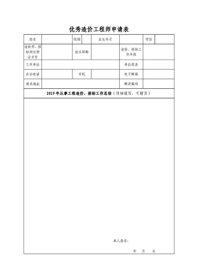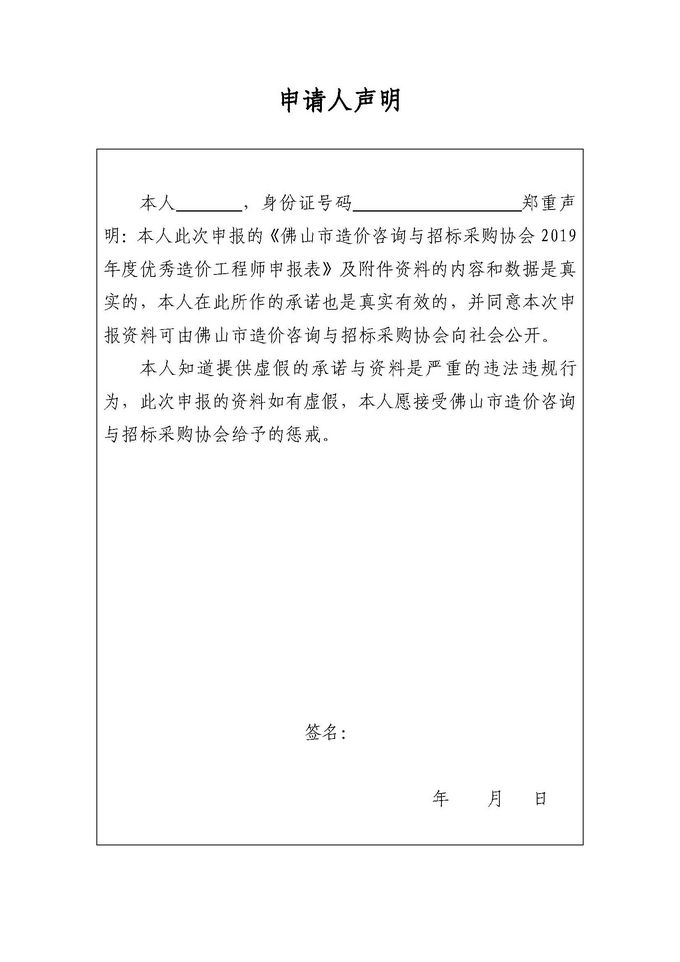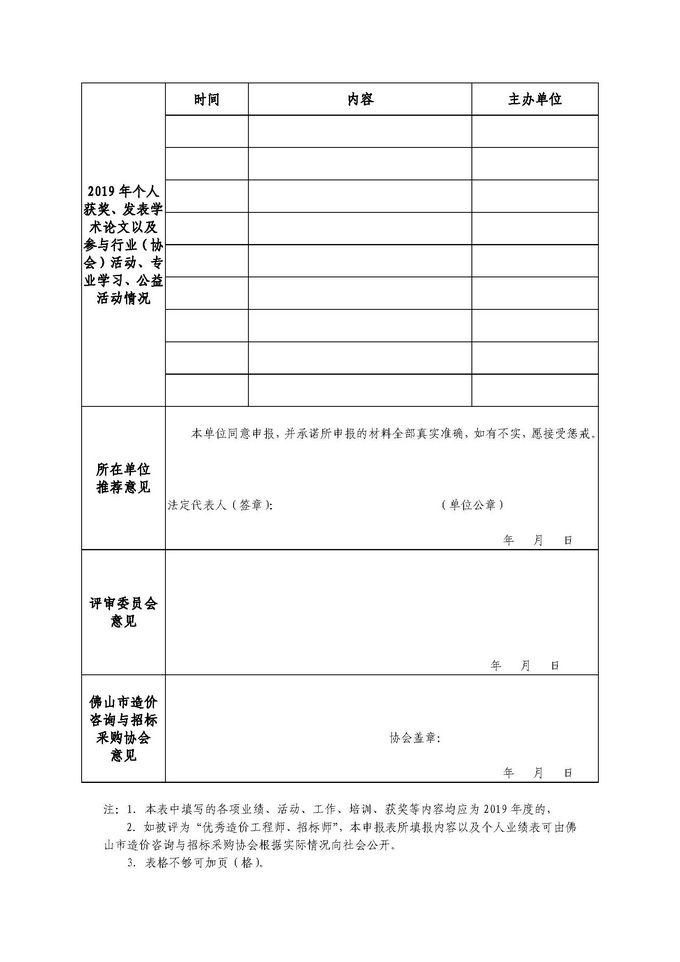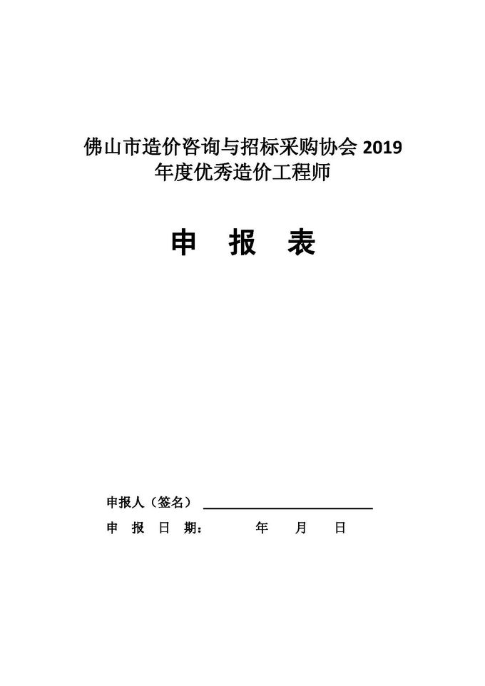 附件3、佛山市造價咨詢與招標(biāo)采購協(xié)會2019年度優(yōu)秀造價工程師申 報 表