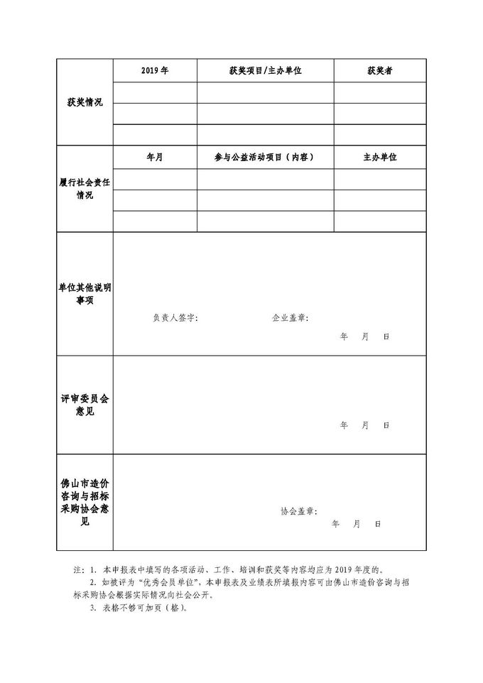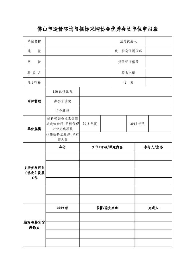 附件2、佛山市造價咨詢與招標(biāo)采購協(xié)會2019年度優(yōu)秀會員單位申 報 表