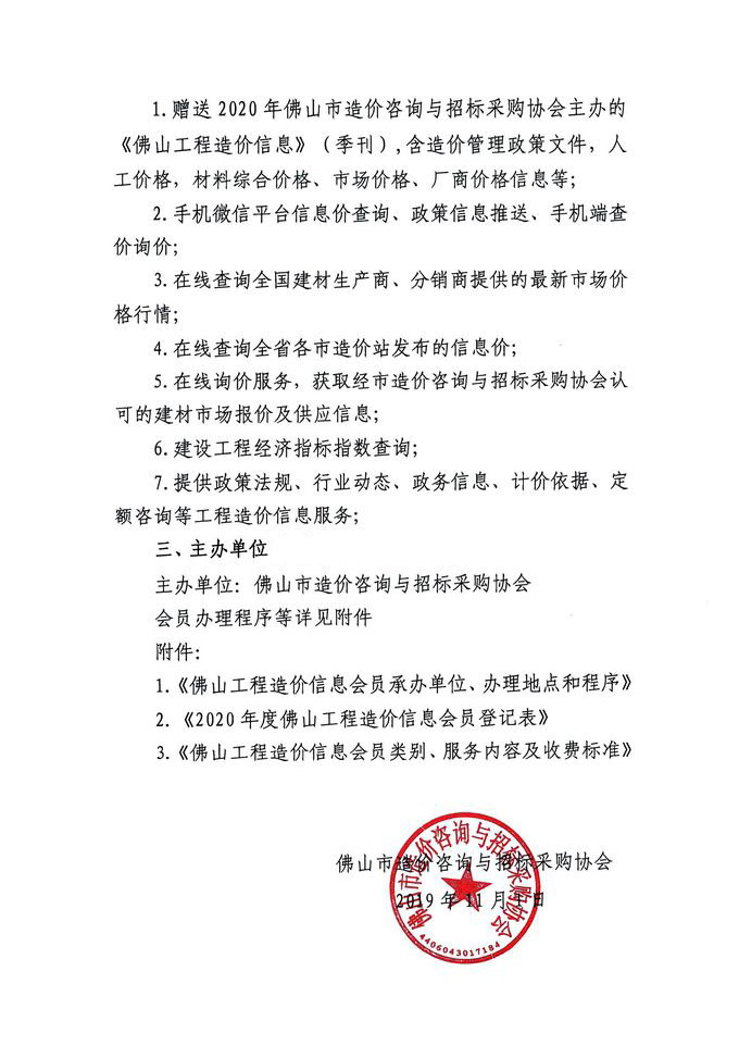 附件一《佛山工程造價信息會員承辦單位、辦理地點和程序》
