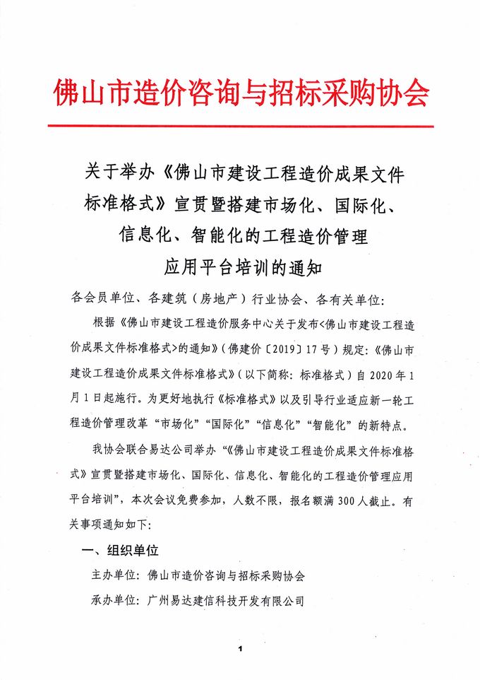 關(guān)于舉辦《佛山市建設(shè)工程造價(jià)成果文件標(biāo)準(zhǔn)格式》宣貫暨搭建市場(chǎng)化、國(guó)際化、信息化、智能化的工程造價(jià)管理應(yīng)用平臺(tái)培訓(xùn)的通知