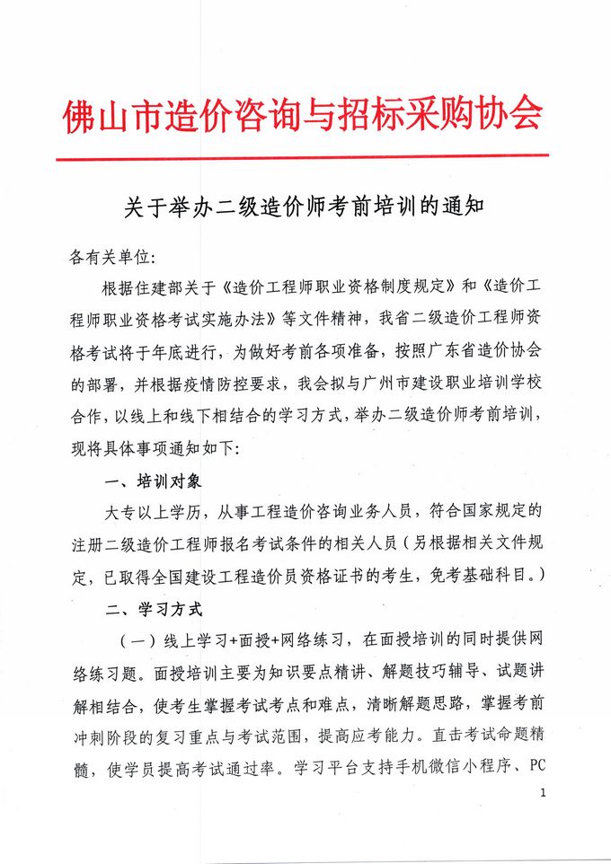 關(guān)于舉辦二級(jí)造價(jià)師考前培訓(xùn)通知