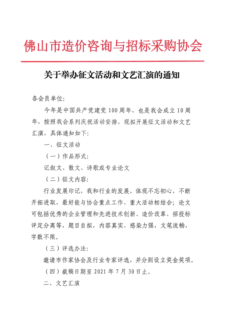 關于舉辦征文活動和文藝匯演的通知