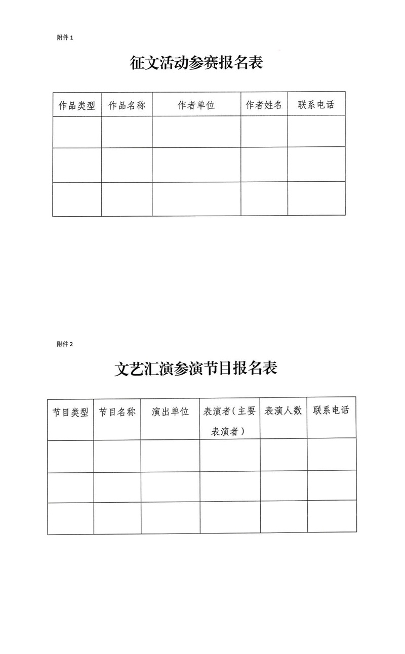 附件:1.征文活動參賽報名表;2.文藝匯演參演節目報名表