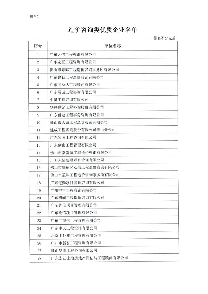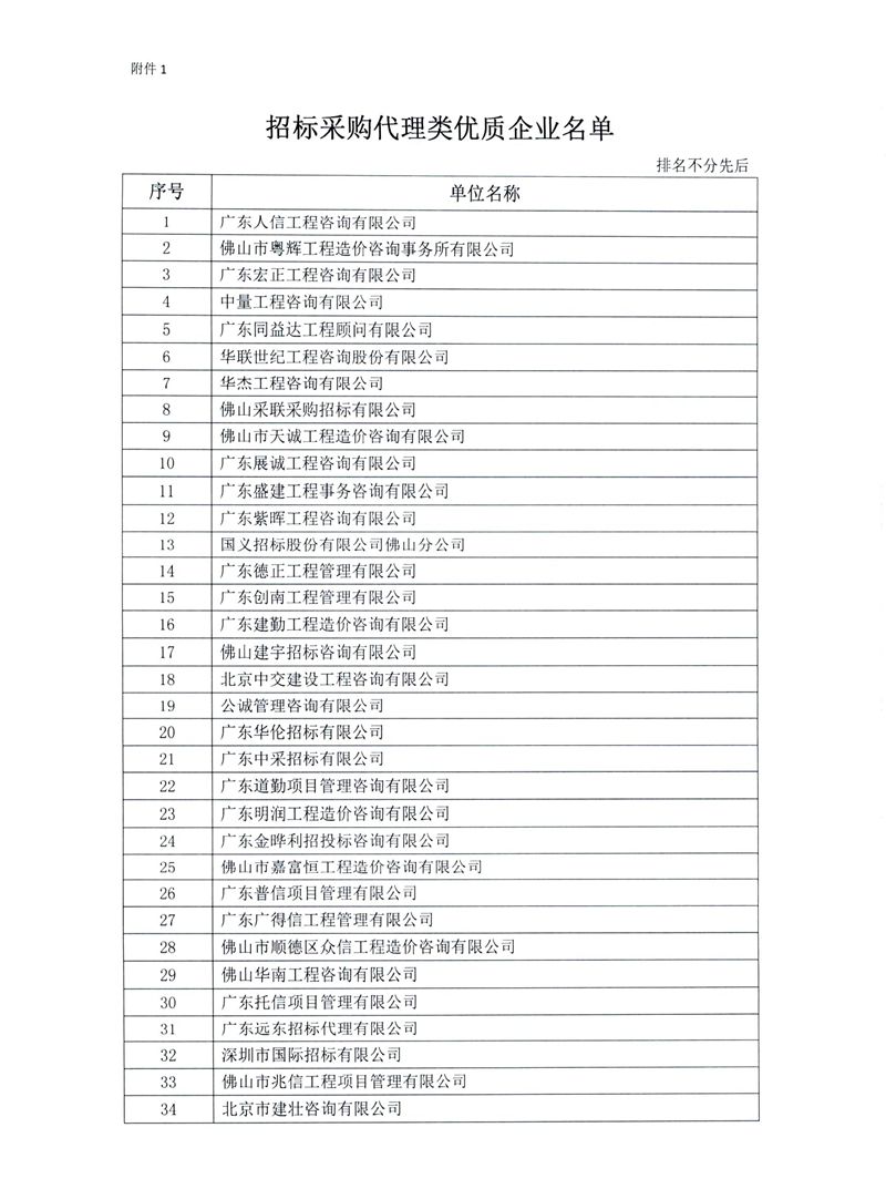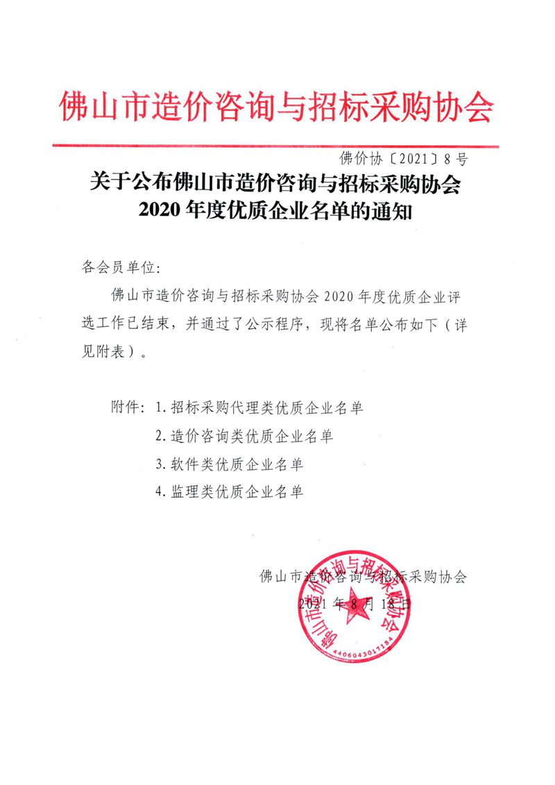 關于公布佛山市造價咨詢與招標采購協會2020年度優質企業名單的通知