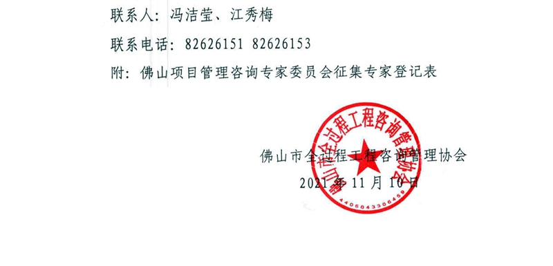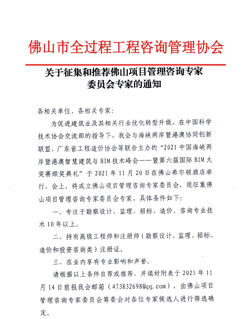 關(guān)于征集和推薦佛山項(xiàng)目管理咨詢專家委員會(huì)專家的通知