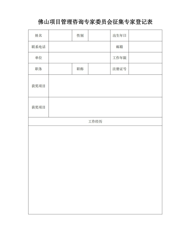 附件:佛山項(xiàng)目管理咨詢專家委員會(huì)征集專家登記表