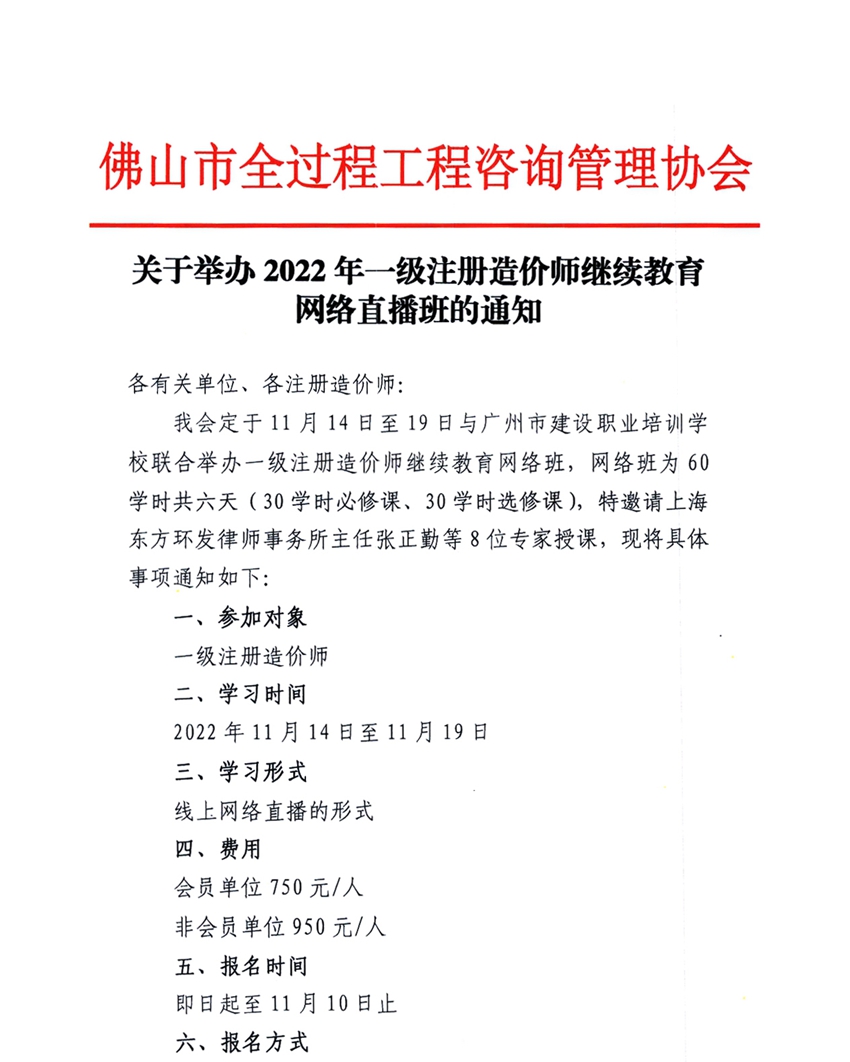 關(guān)于舉辦2022年一級注冊造價師繼續(xù)教育網(wǎng)絡(luò)直播班的通知