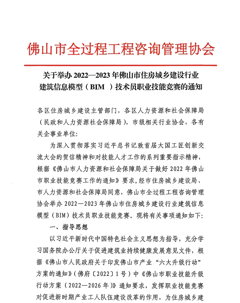 關于舉辦2022—2023年佛山市住房城鄉建設行業建筑信息模型(BIM)技術員職業技能競賽的通知
