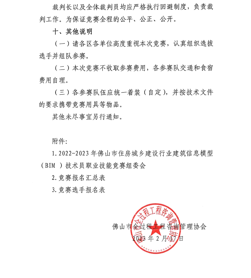 附件1:2022-2023年佛山市住房城鄉建設行業建筑信息模型(BIM )技術員職業技能競賽組委會