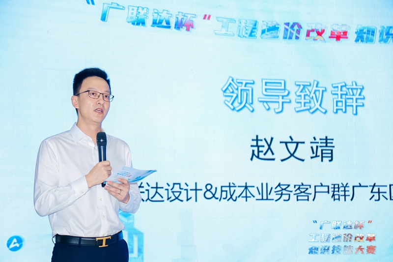 隨后,廣聯達作為大賽協辦單位,廣聯達設計&成本業務客戶群廣東區域總經理趙文靖進行頒獎致辭,趙總感謝佛山全過程工程咨詢管理協會對廣聯達的信任和認可,廣聯達作為協辦單位,全力提供技術與服務支持。大賽期間也見證了佛山各企業對本次大賽的重視,以及佛山對于打造技能精英大軍的的決心,廣聯達將繼續在行業的道路上不斷地探索與實踐,為佛山的人才梯隊建設和降本增效的道路上添磚加瓦!廣聯達未來愿與更多行業伙伴更深入地交流合作,共同擔當數字化轉型的重任。
