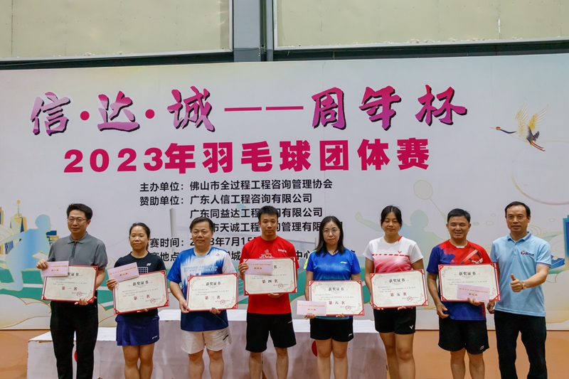 2023年“信?達?誠--周年杯”羽毛球團體賽至此圓滿落幕。在此特別鳴謝廣東人信工程咨詢有限公司、廣東同益達工程顧問有限公司、佛山市天誠工程咨詢管理有限公司三家公司的鼎力支持,同時感謝所有參賽選手和工作人員積極參與,期待一下屆的“展誠杯”再相聚。