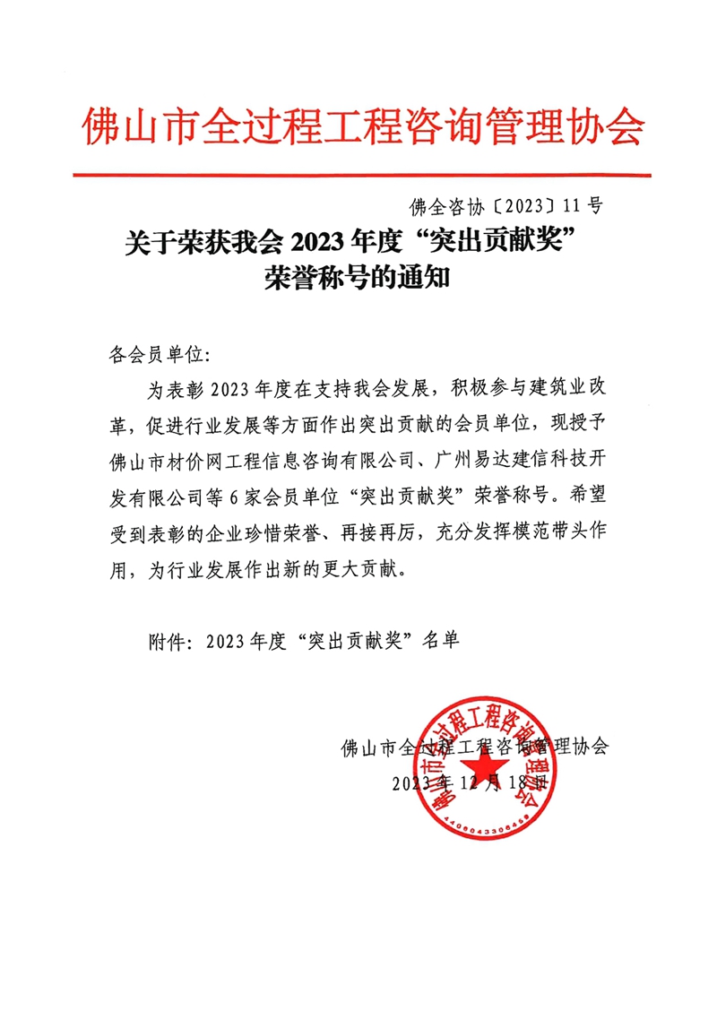 關于榮獲我會2023年度“突出貢獻獎”榮譽稱號的通知